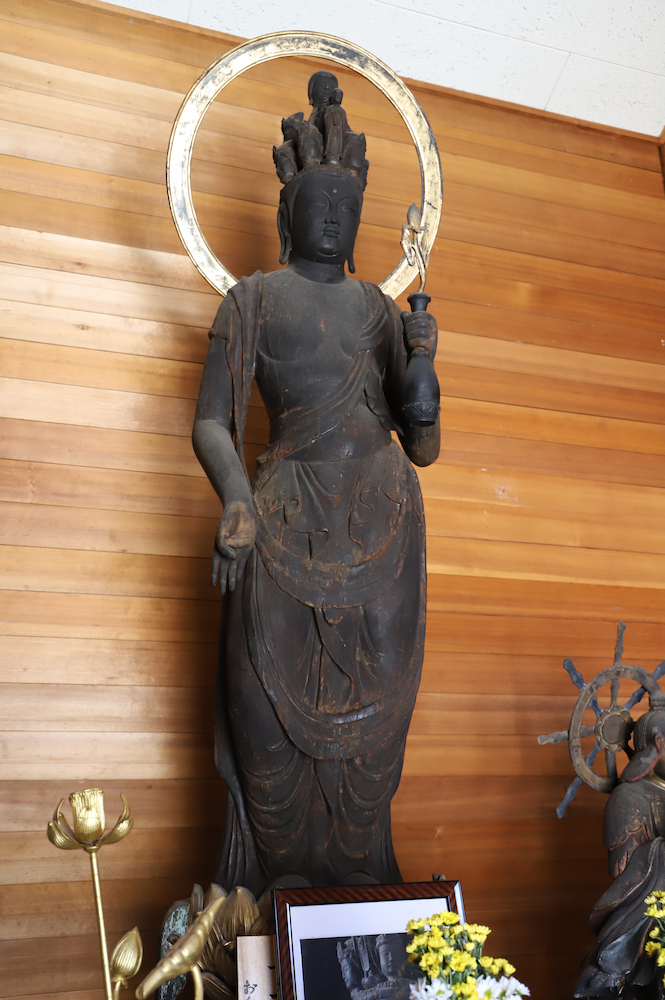 HOME地域別山麓エリア 祈りを捧げ、ご縁を深める「置恩寺観音講」を見学してきた。 2026-02-17 山麓エリア 新着情報 神社仏閣 奈良県葛城市寺口にある置恩寺は奈良時代末~平安時代初期に建立されたと伝わる古寺。現在は當麻寺中之坊が兼務しており、寺口区の人々によって管理されています。 そんな同寺には村の女性たちによって組織された「観音講」があり、毎月17日に十一面観音菩薩立像の前で読経、および堂内の清掃を行っています。今回はある日の観音講にお伺いしてきました。 置恩寺本堂 集合は午前8時30分頃。本堂と観音様を安置する収蔵庫の清掃と供え物の準備を行います。本堂も収蔵庫も普段は非公開となっているため、17日を目がけてお参りに来られる方もチラホラ。 本尊は薬師如来坐像 収蔵庫に安置される十一面観音菩薩立像は平安時代初期から中期の造像と考えられているもので国の重要文化財にも指定されています。 鼻筋が細く、微笑をたたえる唇の優しく上品な顔立ちに、重心をわずかに左足にのせ右足の力を抜いて立つプロポーション。まさに美仏ですね♪ ひと休みした後、午前10時から読経が始まります。置恩寺は真言宗寺院ですが、観音講ではじめに唱えられたのは「香偈(こうげ)」。浄土宗の印象があったのですが、他宗でも読まれるのでしょうか…? 念仏を唱えた後は、西国三十三所観音霊場の各札所やお大師さま、置恩寺の御詠歌を順にあげていきます。文字に残せない節回しはお坊さんが唱えるそれとは少し変化していて聴いているだけでも非常に興味深いです。 鉦を打ちながら独特の節で唱えられる御詠歌。ひとつあげるごと1本ずつ立てられる線香の香りや、ほのかに揺れ灯るろうそくの火。目に耳に鼻に、観音様と徐々にご縁が結ばれていく感覚を全身で感じられる。そんな気がしてきます。 読経が終わるとひと通り片付けをして、みんなでお弁当タイム。その後はお昼過ぎまでおしゃべりを楽しんで帰られるそうです。 おみかんとお菓子もらった この日も10人近くが参られていましたが、寺口地区の過疎が進むと共に観音講も高齢化が進み、その維持が危ぶまれています。 また講に限らず、置恩寺自体も老朽化が深刻で、本堂は傾き、空いた穴からコウモリが入り込み、本尊の周りに糞を落とすなどの被害も出ているとか。 糞害対策は進められることが決まったそうですが、ひとつを直せばまた次と出てくる現状に、村単独で修繕・維持が進められるのだろうかと不安視する声もあると言います。 文化や文化財をこれから先に残していくために、まずはとにもかくにも置恩寺を知ってほしい! というのが筆者の気持ちです。観音講のある17日でも、またそれ以外の日でもぜひ一度お参りに足を運んでみてください。 奈良盆地を見渡せる絶景! 【新規会員募集中】 幼児運動教室「ビジョントレーニング&キッズボール教室」(スポーツクラブ葛城) ちゃんこのふるまいも! 「令和7年度 けはやまつり」 相撲発祥の地・葛城市で(2/23)